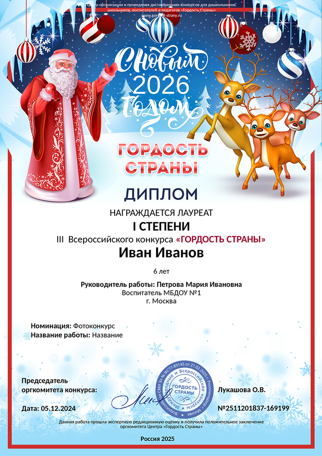 Кураторы, подготовившие лауреатов I,II,III степени получают диплом "руководителя работы" и выписку из приказа бесплатно.