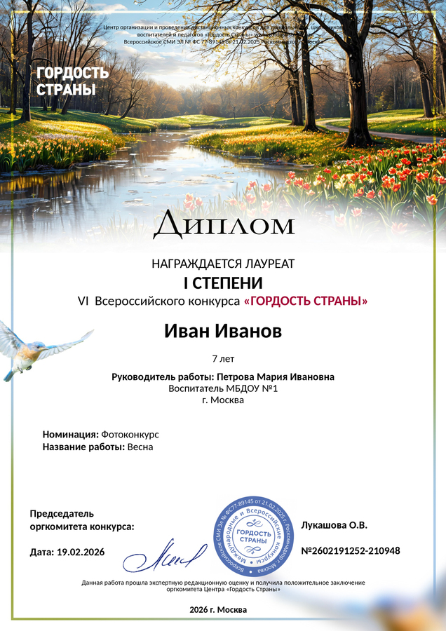 - Всероссийские конкурсы (взнос
